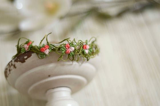 Moss and embroidered flowers halo